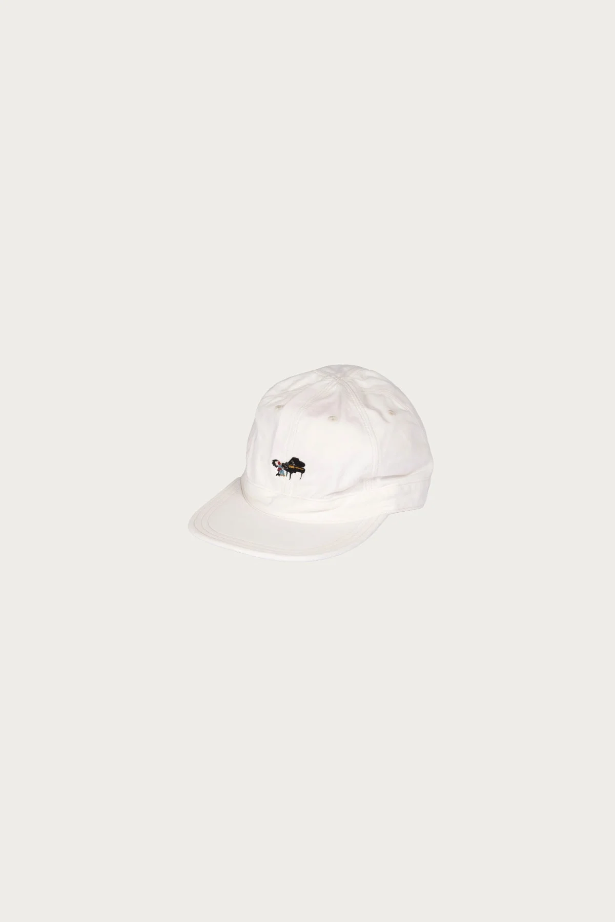 Kapital’s Brimfeild Cap takes a laid back silhouette and adds their unmistakable sense of character. Made from a soft and weathered chino cloth, the crown has an easy slouch that feels perfectly worn from day one. A tonal white brim brings a vintage ball cap energy, while a small embroidered graphic at the front adds that playful Kapital touch. The fit is relaxed and unstructured with an adjustable back strap so it wears comfortably through long days outside or casual weekends. A simple piece elevated with personality. - Cotton chino cloth crown - Tonal White brim - Embroidered front graphic - Unstructured fit - Adjustable strap - Made in Japan - White/White