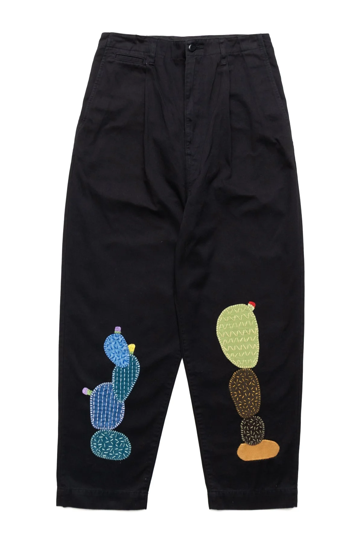 Chino High Waisted NIME Pants (CACTUS Embroidery) - Black