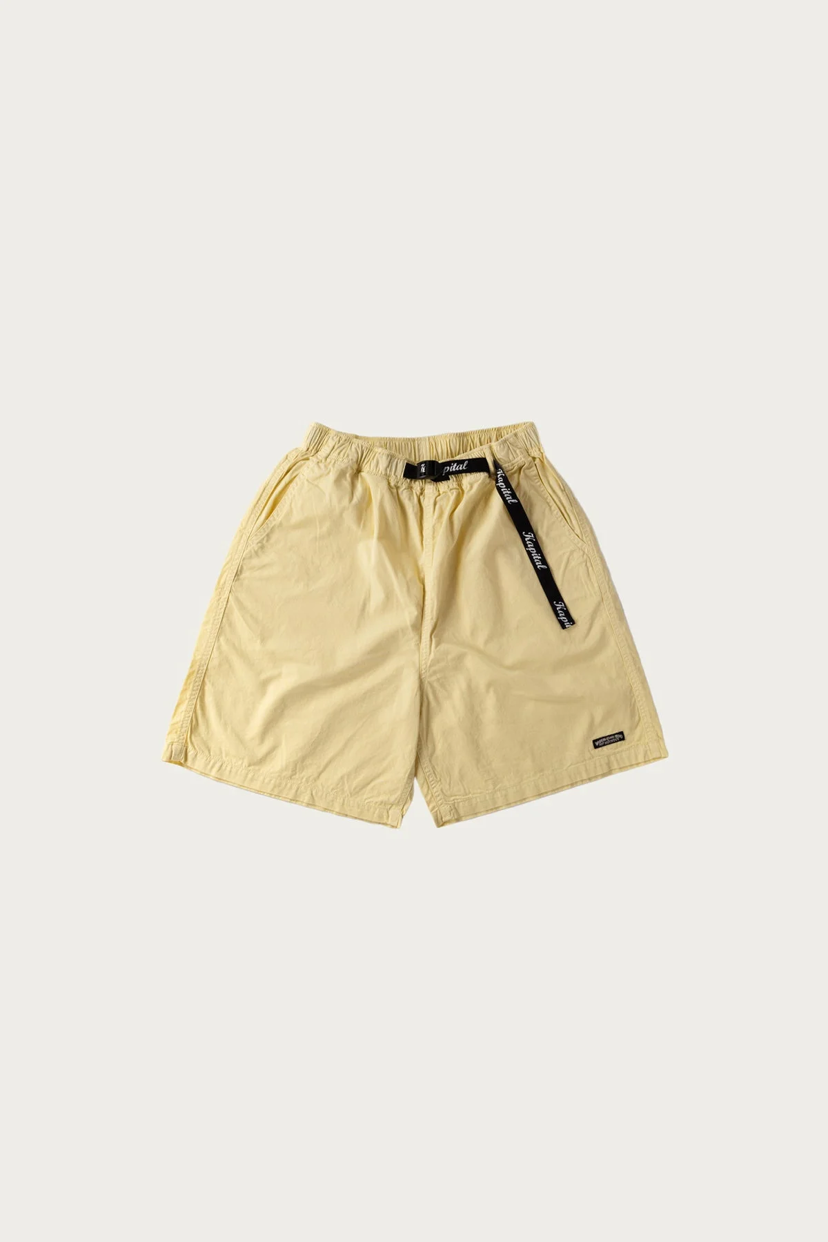 Playful and bold, these are Kapital’s take on easygoing summer staples. Made from combed cotton fabric, the shorts feature a relaxed, slightly wide fit that feels effortless. Dyed in vibrant seasonal tones, they look best styled with oversized tees or short sleeve button-ups for that carefree, sun-faded look. - Lightweight combed cotton fabric - Elastic waistband with drawstring for comfort - Bright garment-dyed colorways - Side seam pockets and single back pocket - Made in Japan - Yellow