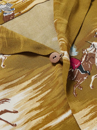 KAPITAL's retro shirt fuses Japanese style with Americana influence. It's cut from breathable crepe and printed with warriors on horseback amongst a cloud-covered backdrop. Size & Fit - Size 1 = XS, 2 = S, 3 = M, 4 = L, 5 = XL and 6 = XXL - Model wears a size larger to achieve a looser fit - Mid-weight, slightly stretchy fabric - Model is shown wearing a 3 - Model measures: chest 36"/ 92cm, height 6'2"/ 188cm Details & Care - Multicoloured crepe - Button fastenings - 100% viscose - Hand wash