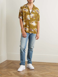 Convertible-Collar Printed Crepe Shirt