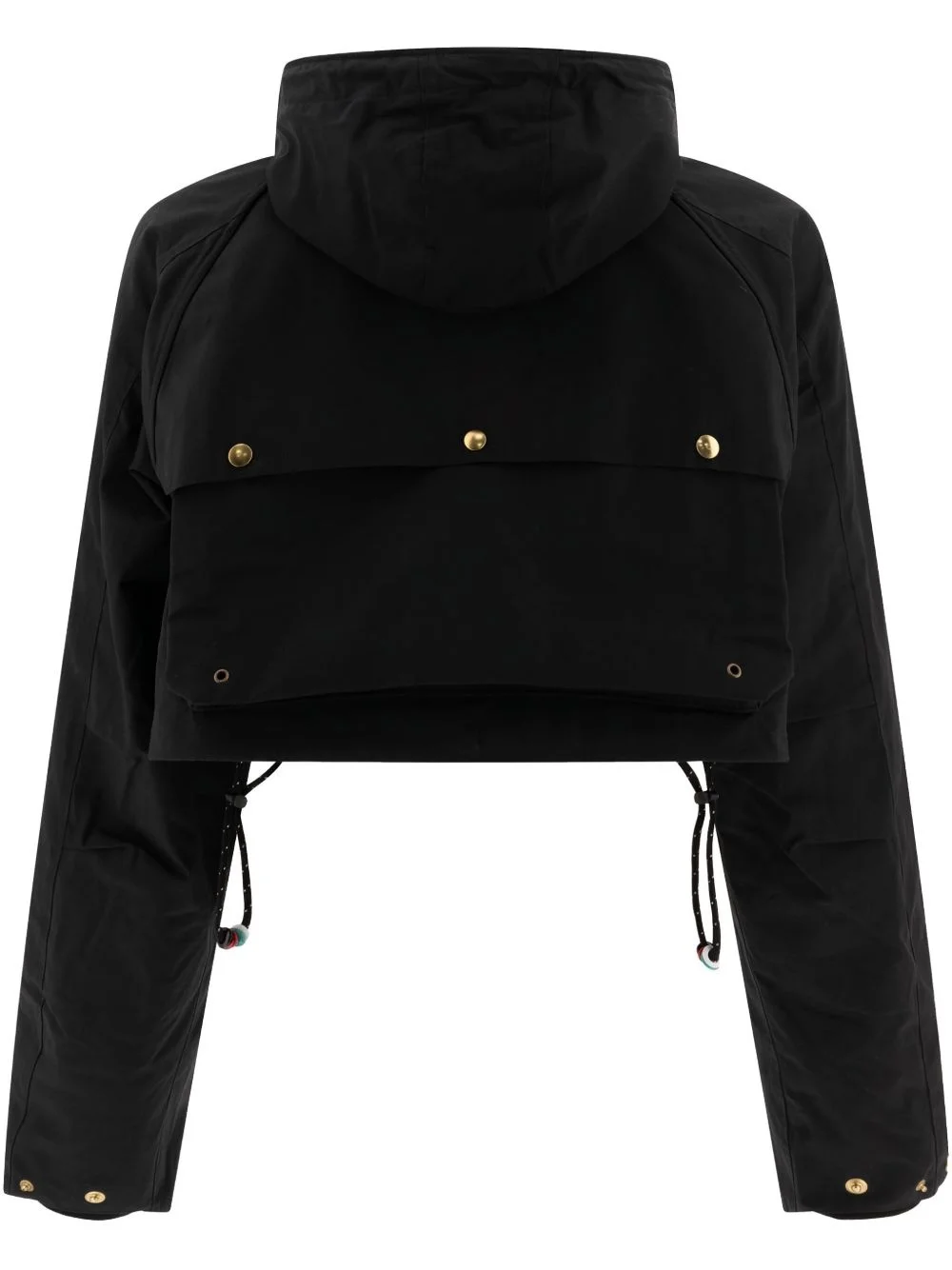 cotton jacket Highlights - Black - Front press-stud and zip fastening - Two front flap pockets - Press-stud fastening cuffs - Drawstring hem Imported Composition Outer: Cotton 100%, Acrylic 64%, Wool 26%, Polyester 9%, Polyurethane 1% Lining: Polyester 100%, Cotton 100%