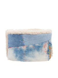 KAPITAL scarf in multicolor, through hole type muffler, 12.oz denim, patchwork & tie-dye pattern, embroidery details, fleece lining. Made in Japan One Size Main - 100% Cotton Lining & Fill - 100% Polyester