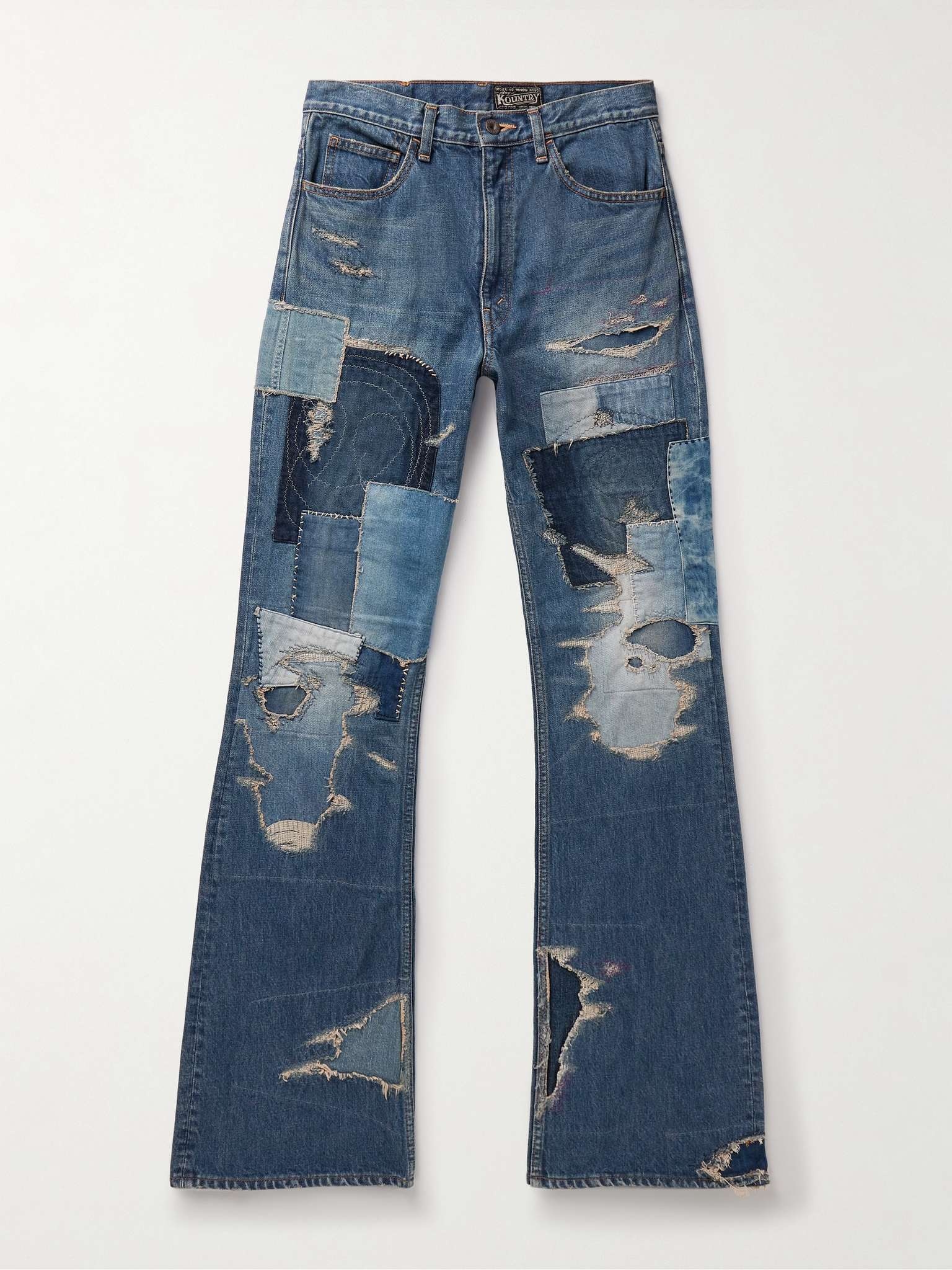 Each iteration of KAPTIAL's patchwork jeans is as cool as the last. Made in Japan from 14oz. denim, this flared 'Crazy Dixie' pair is designed to look like a pair you've lovingly repaired over the years. Wear yours with any of the label's knitwear. Small to size. See Size & Fit notes. Size & Fit - Fits small to size. Take one size larger than normal - Those with muscular thighs may wish to take a further size up - Slim cut; flared at the hem - Mid-weight, non-stretchy fabric - Model is shown wearing a 34 - Model measures: waist size 32, height 6'2"/ 188cm Details & Care - Tonal-blue denim - Button and zip fastening - 100% cotton - Hand wash