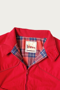 Stay stylish and comfortable with the Dry Weather SHAM BOMBER Golf JKT. Made with dry cotton weather fabric, this jacket keeps you dry and cool. Its retro check pattern lining adds a classic touch. Plus, it easily transforms into a cushion for added functionality. Perfect for any weather conditions! - 100% Cotton - Zips into a Cushion - Bomber Style Jacket - Made in Japan - Red