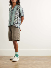 Japanese brand KAPITAL is renowned for its artisanal approach to clothing, using techniques such as boro patchwork, sashiko stitching and indigo dyeing. These straight-leg shorts are made from heavy linen-canvas that has a lived-in washed look. The waist can be easily tightened with the attached webbing belt to neaten up their relaxed shape. Size & Fit - Size 1 = W28, 2 = W30, 3 = W32, 4 = W34, 5 = W36 and 6 = W38 - Fits true to size. Take your normal size - Relaxed-straight leg, low-crotch style - Mid-weight, non-stretchy fabric - Model is shown wearing a 2 - Model measures: waist size 30, height 6'0"/ 183cm Details & Care - Grey linen-canvas - 100% linen - Machine wash