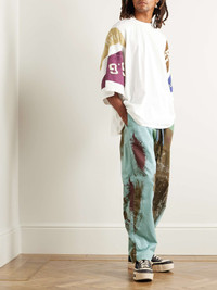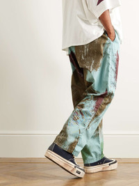 KAPITAL's 'Easy' cargo trousers are patterned with artful brushstrokes that look like an abstract take on camouflage print. They're made from cotton-poplin and have a loose, straight-leg profile with a comfortable drawstring waist, so you can skip the belt. Size & Fit - Size 1 = W28, 2 = W30, 3 = W32, 4 = W34, 5 = W36 and 6 = W38 - Fits true to size. Take your normal size - Relaxed-straight leg, low-crotch style - Mid-weight, non-stretchy fabric - Model is shown wearing a 2 - Model measures: waist size 30, height 6'0"/ 183cm Details & Care - Multicoloured cotton-poplin - 100% cotton; trim: 95% cotton, 5% polyester - Machine wash