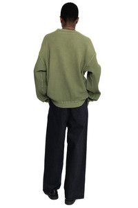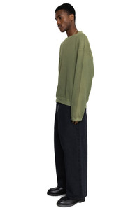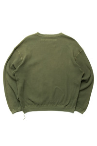 - Crew sweatshirt made from waffle fabric. - Big silhouette - Used processing - Any tears or damage caused by processing are intentional in the design and are not product defects. - Color: Khaki - 100% Cotton - Made In Japan - Style #: EK-1508 - Model is 6'2 wearing a size 3