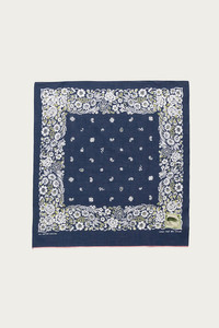 A small square of cloth with a lot of soul. This bandana is woven on selvedge cotton, printed using fastcolor techniques that honor classic bandana tradition, and finished with that slightly washed-in hand that makes it feel like a vintage find from day one. The floral “Churchill Garden” motif spreads across the fabric in a dense, cheerful pattern that still carries an undercurrent of heritage workwear. Compact yet characterful, it’s a small piece with big personality. - 20" x 20" (slightly larger than a traditional Kapital Bandana) - Fastcolor print on vintage-inspired design - Made in Japan - Navy