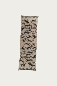 Inspired by hand painted textile traditions, the Indian Painting scarf feels expressive and almost storybook in its layout. The felted wool gives it warmth and a plush hand, while the graphic artwork keeps it visually bold. Best worn simply so the design stays front and center, it pairs easily with understated jackets, knitwear, and earth toned layers. - 100% Wool - Beige