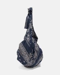 Blending utility with KAPITAL’s eclectic style, this mid-sized sling bag is built from durable cotton canvas with tonal bandana patchwork for rich visual texture. A wide shoulder strap with D-ring hardware allows for a customizable fit, while breathable mesh lining provides gentle structure. The double zip closure secures your belongings, and reinforced stitching ensures lasting durability. Finished with striped jacquard trim for a subtle playful touch. DETAILS - K2504XB528 - Body: 100% Cotton - Lining: 100% Polyester - Durable cotton canvas fabric - Breathable mesh lining - Adjustable knotted shoulder strap with metal ring - Double zip closure - Interior zip pocket with mesh lining - Made in Japan