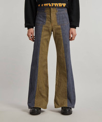 Editor's Notes Fusing classic Americana influences with their Japanese aesthetic, the Gypsy Flare denim jeans from cult brand Kapital boast a two-tone panelled construction, reminiscent of '70s styles. Artfully crafted in Japan, these 14oz denim jeans feature a flared cut with wide cuffs, a zip-fly opening, two patch pockets on the front and two to the back detailed with seamed designs, reminiscent of sun-rays, complete with vibrant contrast top-stitching throughout. Features Flared jeans 14oz cotton denim Two-tone panelled construction Flare-leg fit Four-pocket styling Zip-fly closure Brand patch to the back waistband Belt loops Made in Japan SIZE & FIT Model is 187cm/6'1.5"; Chest: 93.4cm; Waist: 81cm and wears a size 32 Composition & Care 100% Cotton Hand wash About Kapital Established in 1984, Kapital’s name comes from Japan’s ‘denim capital’ Kojima. A kooky take on utilitarian-inspired workwear, Kapital creates original menswear using Japanese production techniques perfected across the decades. Its collections of textural knits with a handicraft feel, tie-dye pieces and Americana-inspired prints are the perfect accompaniment to Kapital’s impeccable denim staples.