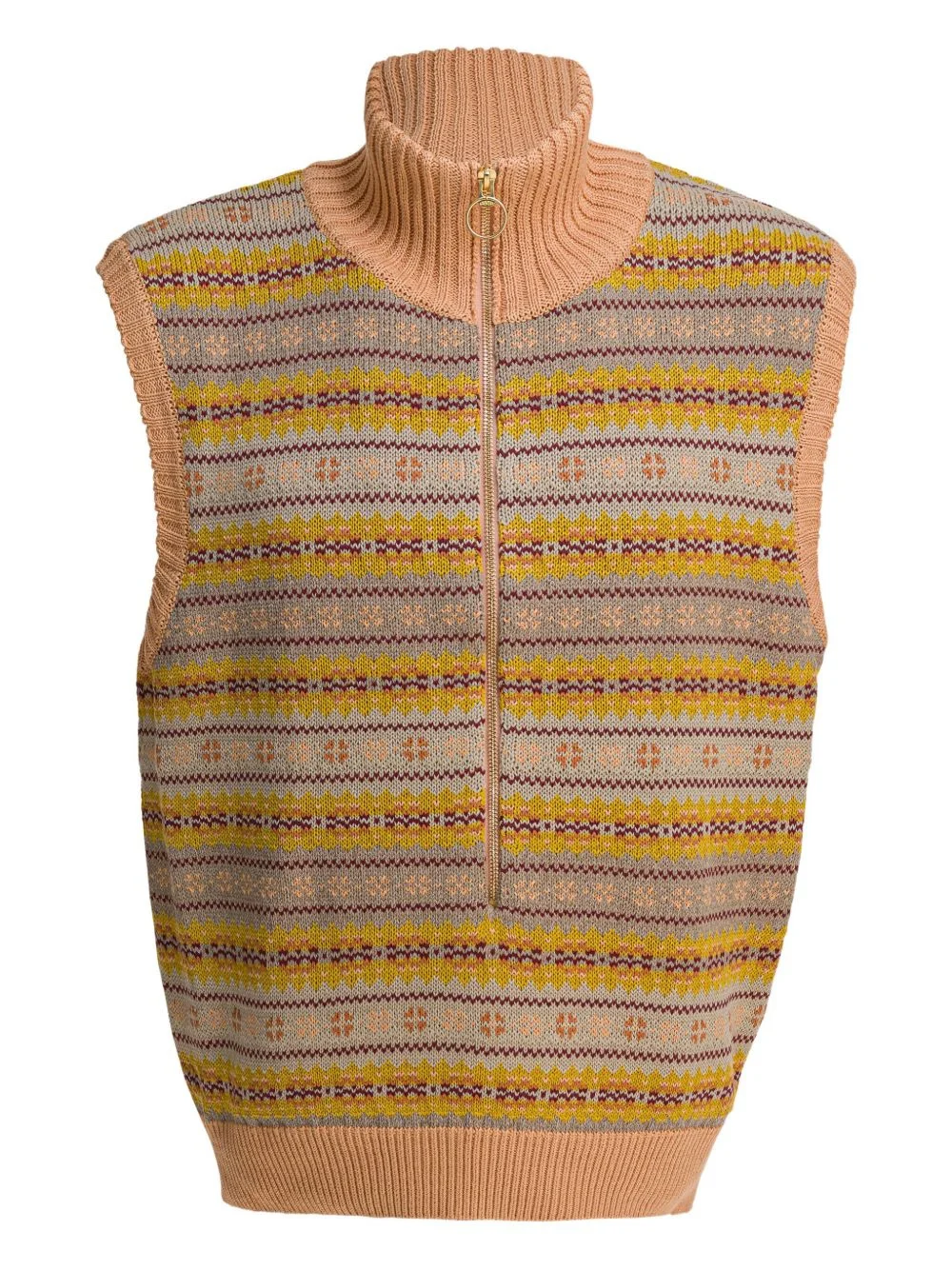 high-neck half-zip knitted vest