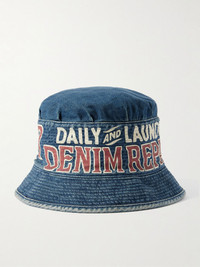 KAPITAL's bucket hat is printed with a 'Laundry' logo inspired by vintage signs. It's been made Japan from 11.5. oz denim and has a topstitched brim. Details & Care - Blue, red and off-white denim - 100% cotton - Machine wash