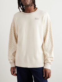 Logo-Embroidered Printed Waffle-Knit Cotton-Jersey T-Shirt Off-white