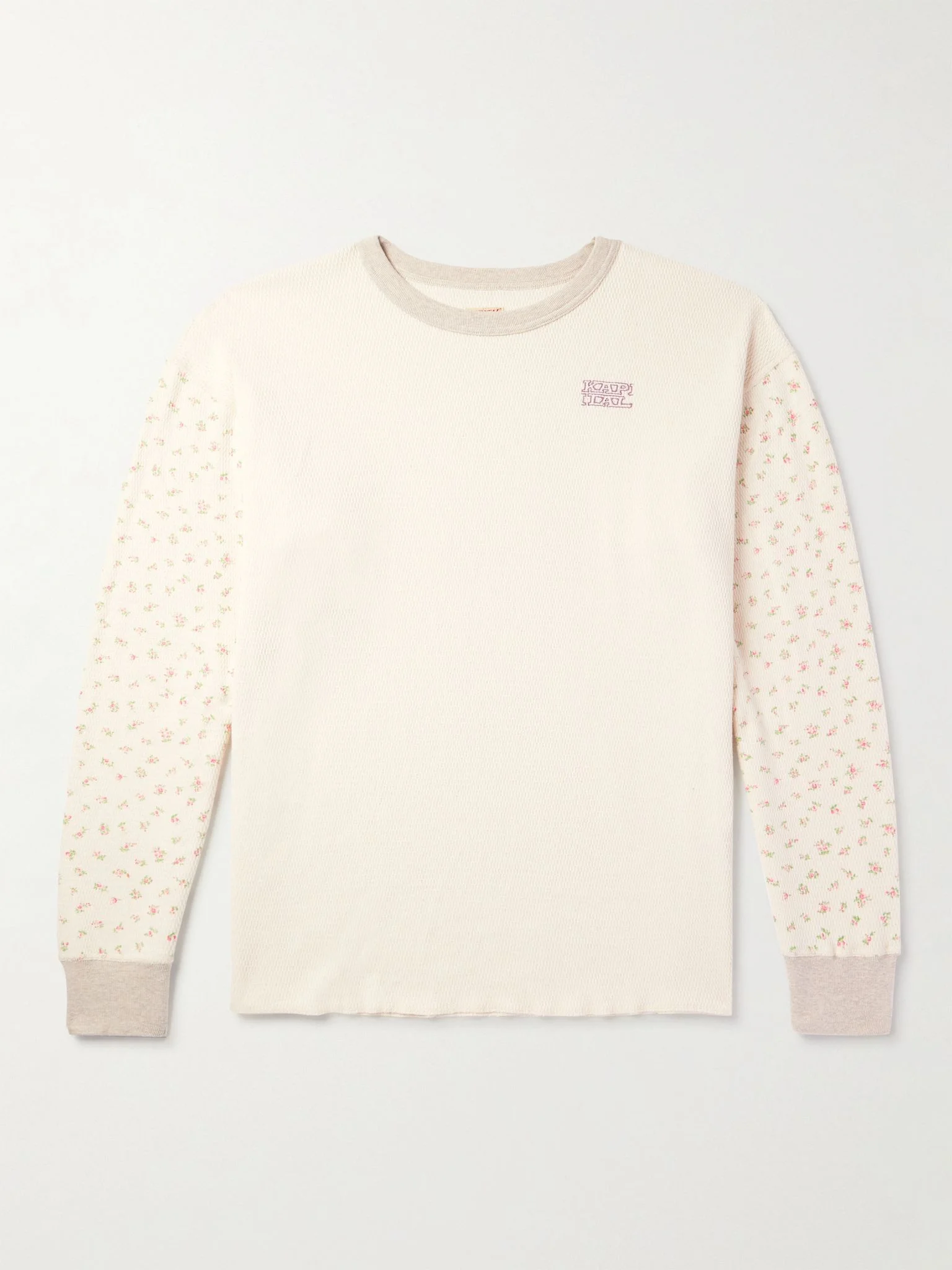 KAPITAL's tee has been made in Japan from soft cotton and waffle-knit for a textured handle. It's decorated with a blocked logo embroidered at the chest and a delicate floral print on the sleeves. Size & Fit - Size 1 = XS, 2 = S, 3 = M, 4 = L, 5 = XL and 6 = XXL - Model wears a size larger to achieve a looser fit - Dropped shoulder seam - Mid-weight, slightly stretchy fabric - Model is shown wearing a 4 - Model measures: chest 38"/ 96cm, height 6'0"/ 183cm Details & Care - Off-white, pink and green cotton-jersey - 100% cotton - Machine wash