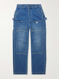 KAPITAL's 'Lumber' jeans are fitted with all the functional details you'd expect of true workwear. They're cut from 11.5oz. denim for a straight fit and have panels at the knees. The spacious pockets are also really practical. Size & Fit - Size 1 = W28, 2 = W30, 3 = W32, 4 = W34, 5 = W36 and 6 = W38 - Fits true to size. Take your normal size - Regular-straight leg, mid-rise style - Mid-weight, non-stretchy fabric - Model is shown wearing a 3 - Model measures: waist size 32, height 6'3"/ 191cm Details & Care - Blue denim - Button fastenings - 100% cotton - Machine wash