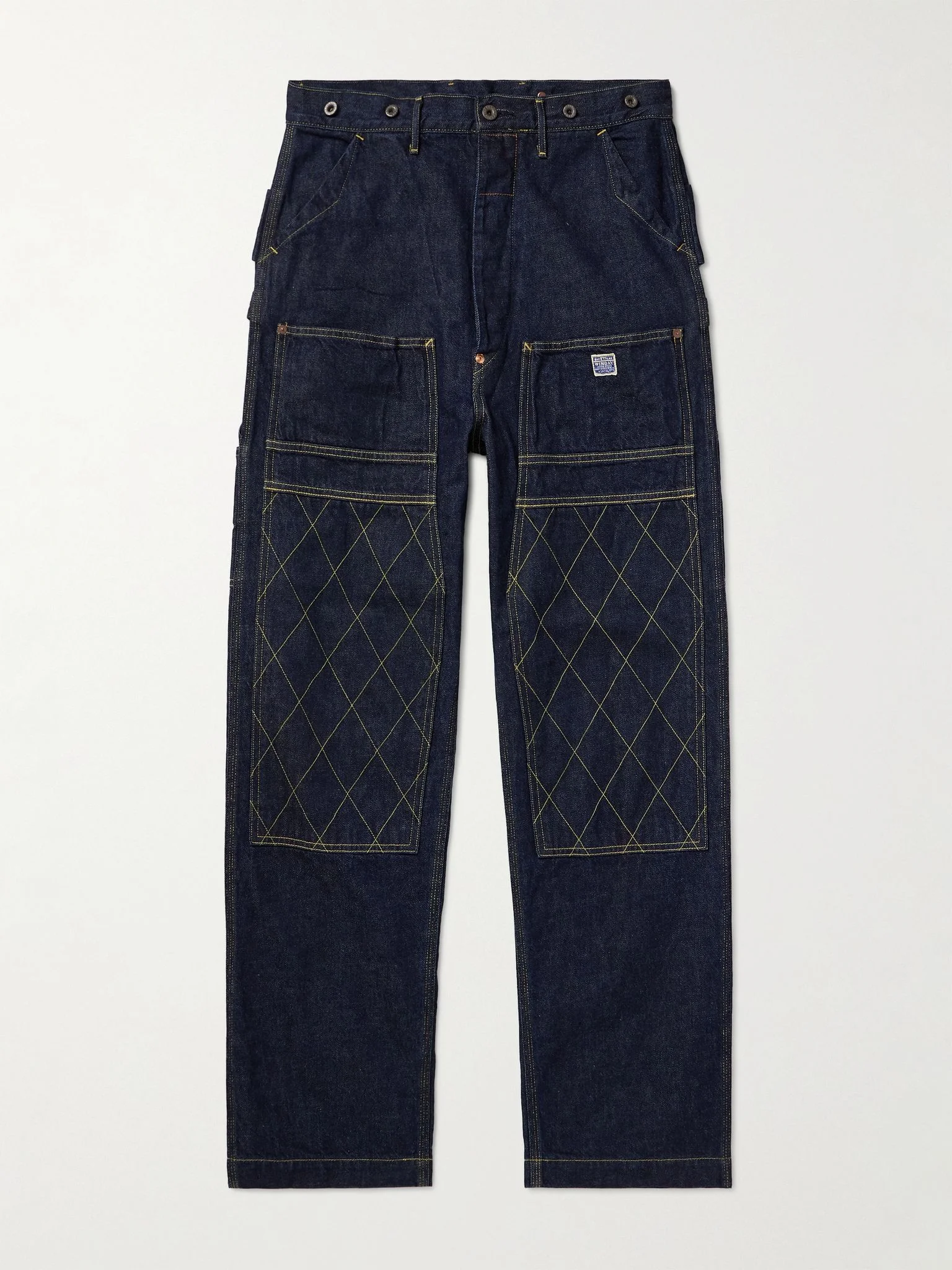 KAPITAL's 'Lumber' jeans are fitted with all the functional details you'd expect of true workwear. They're cut from 11.5oz. denim for a straight fit and have diamond-stitched panels at the knees. The spacious pockets are also really practical, while the hammer loops - do with them as you will. Size & Fit - Size 1 = W28, 2 = W30, 3 = W32, 4 = W34, 5 = W36 and 6 = W38 - Fits true to size. Take your normal size - Relaxed-straight leg, low-crotch style - Mid-weight, non-stretchy fabric - Model is shown wearing a 3 - Model measures: waist size 32, height 6'0"/ 183cm Details & Care - Dark-blue denim - Button fastenings - 100% cotton - Machine wash