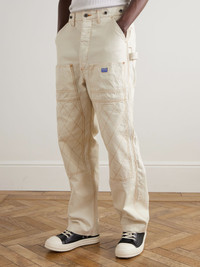 Lumber Straight-Leg Embroidered Cotton-Canvas Cargo Trousers Ecru