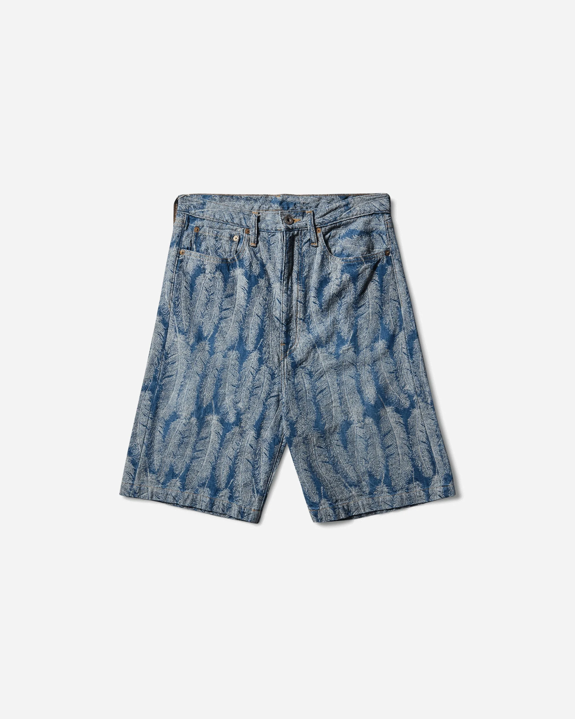 KAPITAL 12oz MAGPIE Denim 5P Shorts Light Indigo Combining comfort with the eccentric design typical of the Kapital catalog, each piece becomes a unique staple. Five-pocket shorts made from 12oz jacquard denim. Jacquard denim is used to express the beautiful ifeathers of a magpie in three dimensions. - 100% Cotton - 12oz Jacquard Denim Fabric - Regular Fit - Indigo Dyed - Button Closure - Zip-Fly - Five-Pocket Construction - Woven Logo Patch - Made in Japan - Style Code: K2403SP012 LIGHT