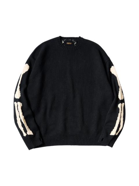 KAPITAL ITEM INFO: Kapital delivers the perfect lightweight sweater. Warm, breathable, and effortlessly draped. Made from 100% wool in a medium-gauge knit, it features natural distressing and the brand’s signature bones motif on the arms and back. Designed for a roomy, oversized fit. 100% Wool Medium-Gauge Knit Natural Distressing Kapital Bones Motif Oversized Draped Fit Made in Japan SKU : EK-1537KN