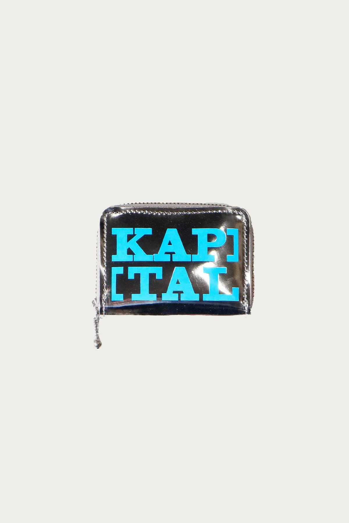 The THUMBS-UP Mini Wallet is a compact round-zip wallet made of glossy leather, with a sleek design and the iconic "KAP][TAL" logo. With a bill pocket, card pocket, and coin pocket, this wallet is both stylish and functional. - Metallic finish - Kapital Logo - Size:11cmx8.5cm - Sax