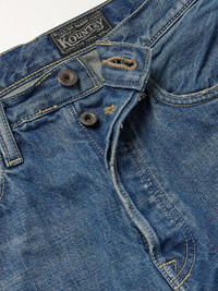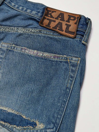 KAPITAL was founded in 1984 by Toshikiyo Hirata in Kojima, Okayama, a region known as Japan's 'Denim Capital'. A unique blend of streetwear and heritage design, these 14oz. 'Monkey Cisco' jeans are distinguished by their distressed patches - wear them with the brand's equally exceptional knitwear. Size & Fit - Model wears a size larger to achieve a looser fit - Regular-straight leg, mid-rise style - Mid-weight, non-stretchy fabric - Model is shown wearing a 32 - Model measures: waist size 30, height 6'2"/ 188cm Details & Care - Tonal-blue denim - Button fastenings - 100% cotton - Hand wash