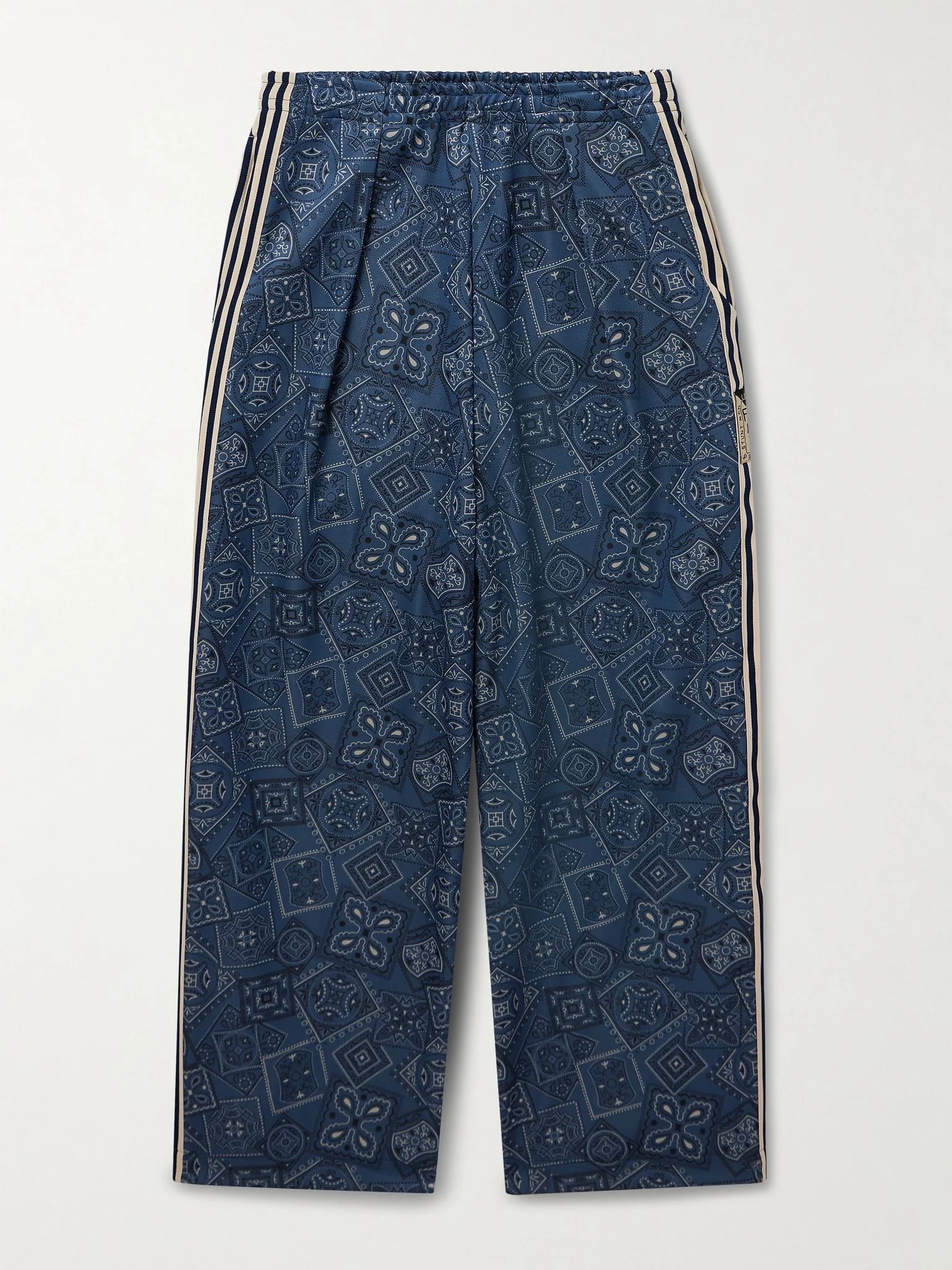 Wide-Leg Striped Webbing-Trimmed Bandana-Print Tech-Jersey Track Pants Navy