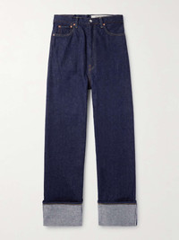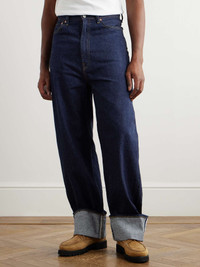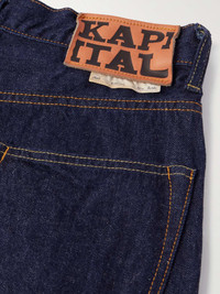 KAPITAL was born from a love of denim – it's the essence of the brand's collections. These 'New Momonroe' jeans have been made in Kojima, Japan from indigo-dyed, 12oz. cotton, cut with a high waist and deep rise. The wide-leg shape will look great with a loose fitting shirt – corduroy will give a workwear-inspired look. Size & Fit - Model wears a size larger to achieve a looser fit - Wide leg, high-rise style - Mid-weight, non-stretchy denim - Model is shown wearing a 32 - Model measures: waist size 30, height 6'0"/ 183cm Details & Care - Blue denim - Button and zip fastening - 100% cotton - Machine wash