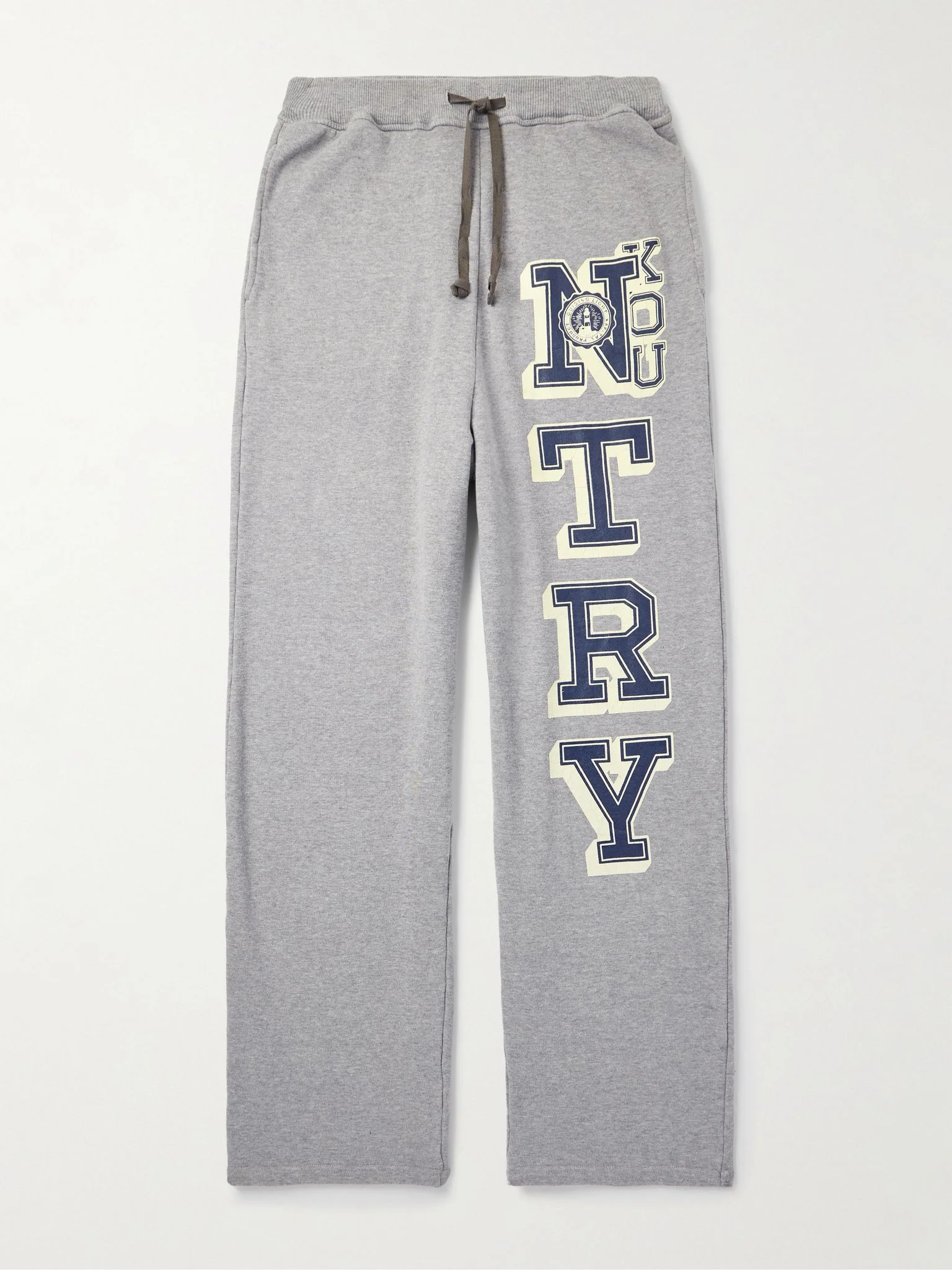 N.TRY Straight-Leg Printed Cotton-Jersey Sweatpants Gray