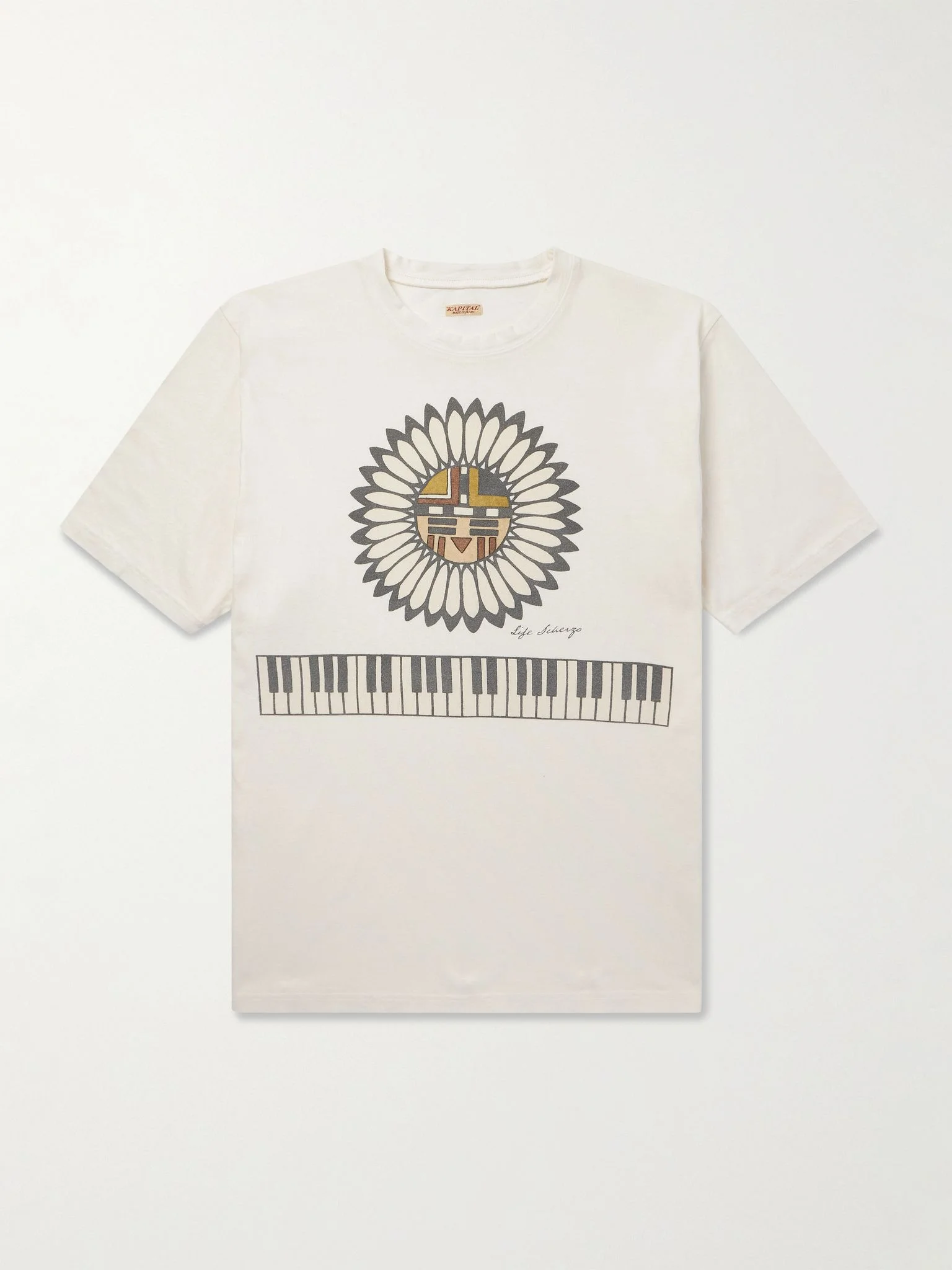 KAPITAL's expressive T-shirts are ideal for showing off your personality. Made in Japan from cotton-jersey, this style is printed with the label's 'Sunface' motif, piano keys and the scripted phrase 'Life Scherzo', referring to a playful, lighthearted composition. Size & Fit - Fits true to size. Take your normal size - Designed for a relaxed fit - Lightweight, non-stretchy fabric - Model is shown wearing a M - Model measures: chest 38"/ 96cm, height 6'2"/ 188cm Details & Care - Multicoloured cotton-jersey - 100% cotton