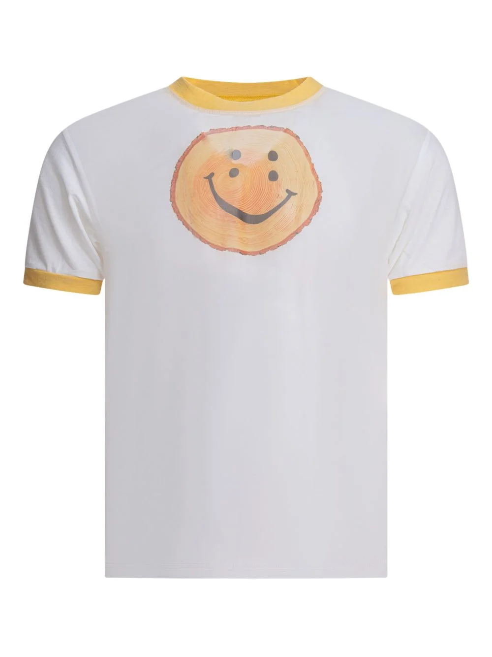 smiley-face crew-neck T-shirt Highlights - White - Wood-print smiley face - Short sleeves - Crew neck - Yellow trim Imported Composition Polyester 100% Washing instructions Read Manufacturer Guidelines