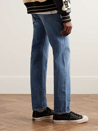 KAPITAL's jeans have been made in Japan from 14oz. denim that's washed and faded to give them a well-worn look. They have straight legs and a classic mid rise. Size & Fit - Fits true to size. Take your normal size - Regular-straight leg, mid-rise style - Mid-weight, non-stretchy fabric - Model is shown wearing a 32 - Model measures: chest 38"/ 96cm, waist size 32, height 6'1"/ 185cm Details & Care - Blue denim - Button fastenings - 100% cotton - Machine wash - Designer wash: Midtone