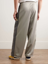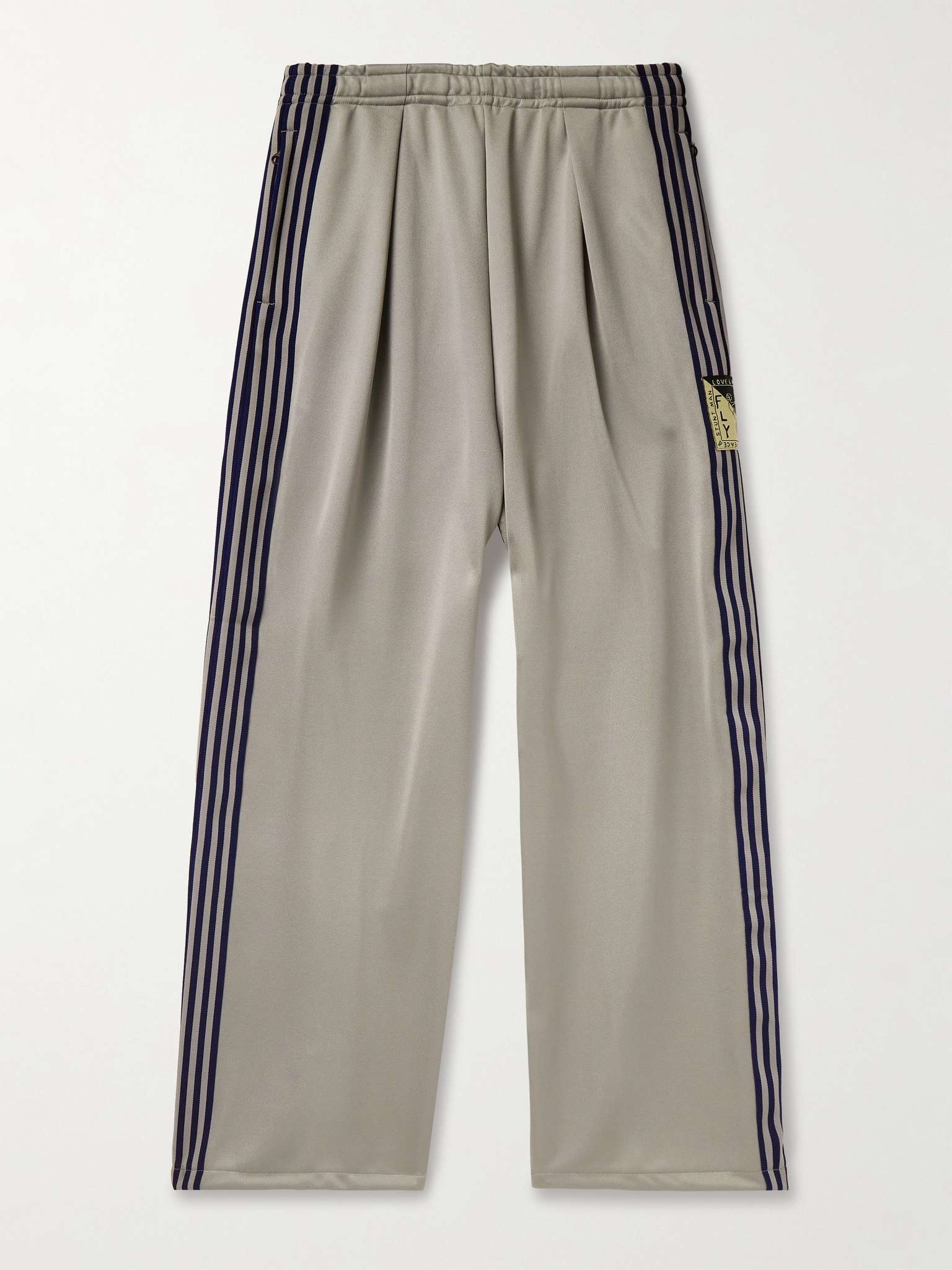 Straight-Leg Pleated Appliquéd Striped Tech-Jersey Track Pants