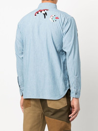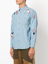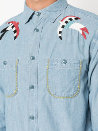 swallow-embroidered work shirt blue/multicolour cotton embroidered design classic collar two chest patch pockets front button fastening long sleeves buttoned cuffs curved hem Imported Composition Cotton 100% SIZE & FIT Model measurements Height 6 ft 2 in(1.88 m) Bust/Chest 38.18 in(97 cm) Hips 37 in(94 cm) Waist 29.92 in(76 cm) Washing instructions Machine Wash