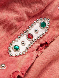 KAPITAL’s fusion of Eastern and Western styles has always made the label a sartorial force. This hoodie has been cut in Japan from comfortable cotton-jersey and distressed to look like a vintage find. The band of crystal and stud embellishments along the hood nod to traditional, historical patterns. Size & Fit - Fits true to size. Take your normal size - Designed for a loose fit - Mid-weight, slightly stretchy fabric - Model is shown wearing a 3 - Model measures: chest 38"/ 96cm, height 6'2"/ 188cm Details & Care - Faded-red cotton-jersey, white suede - 100% cotton; trim: 100% suede - Hand wash