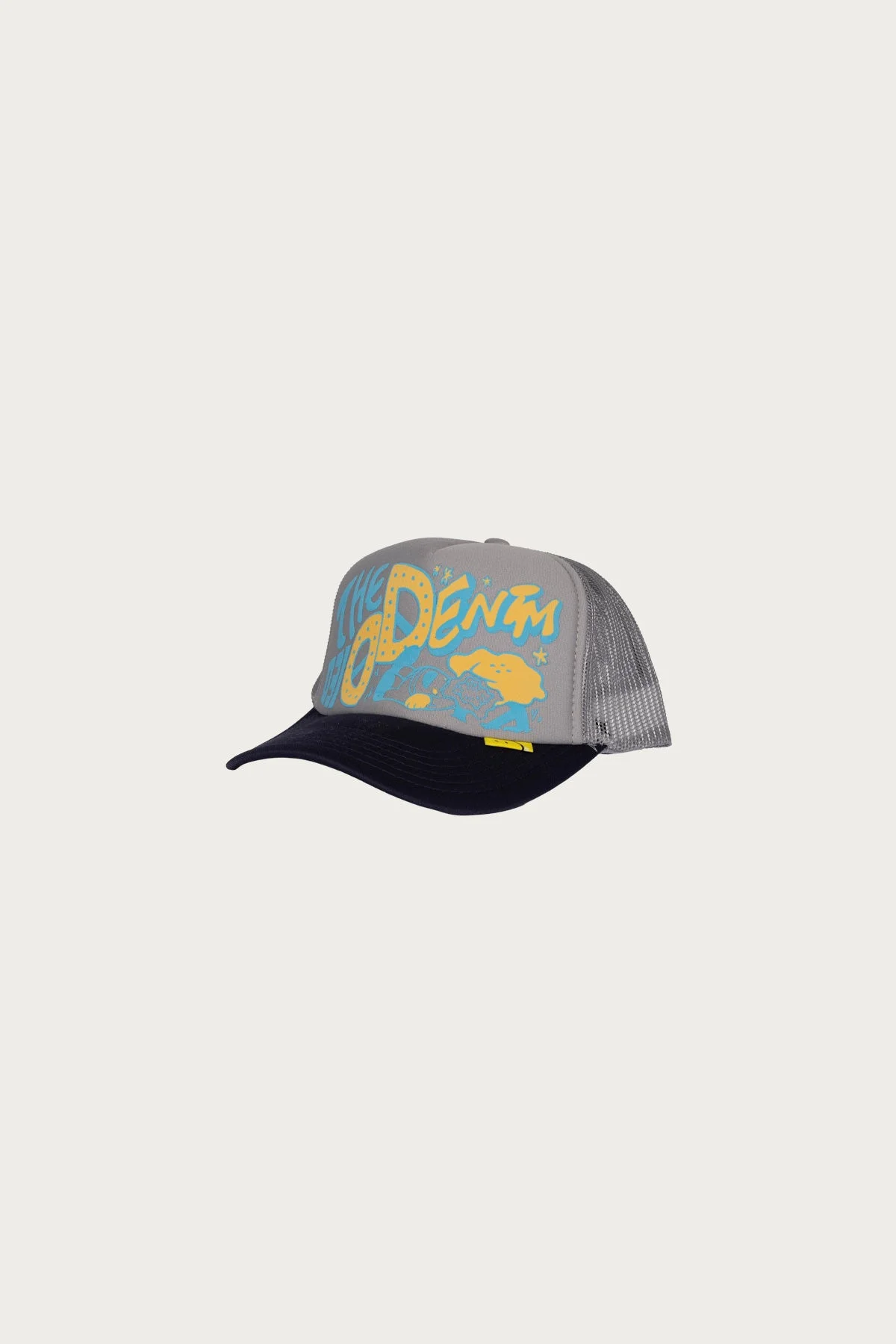 The TH.D.D. Trucker Cap from KAPITAL brings a playful edge to classic Americana. Built with a structured front panel and mesh back, it’s finished with bold foam print lettering across the front that gives it that signature KAPITAL quirk. Inside, a soft pile edging lines the interior for comfort, while the adjustable snapback keeps the fit easy and casual. Made in Japan with attention to the small details that make simple things feel special. - 100% polyester front with foam print - Mesh back: 100% nylon - Pile inner edging for comfort - Adjustable snapback closure - Made in Japan - Grey/Navy