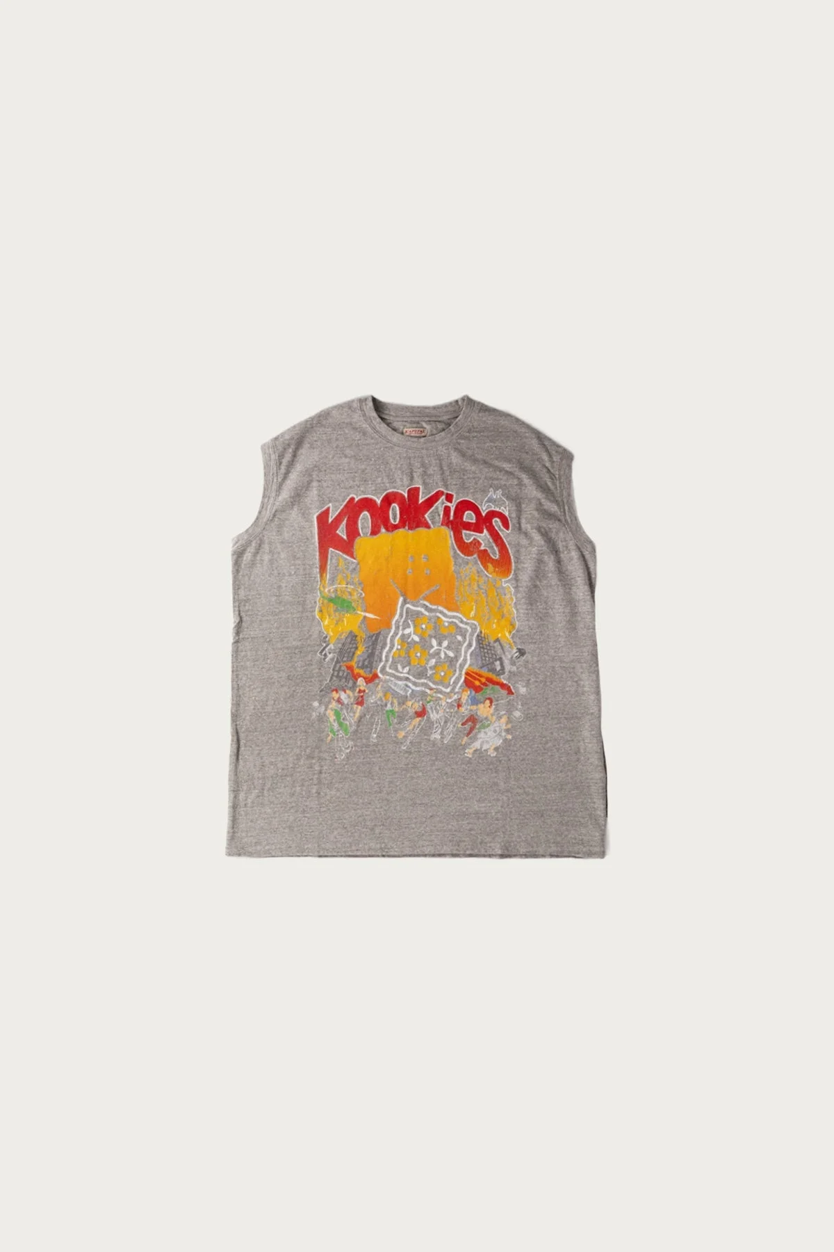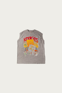 Kapital does it again with a summertime standout—equal parts irreverent and easy-wearing. The BUSTER PECKISH BOWY artwork bursts across the front with that unmistakably playful Kapital energy, while the oversized, sleeveless silhouette keeps things cool and relaxed when the heat rolls in. Made from a soft, medium-weight cotton jersey, this piece has the structure of a tee but the drape of a vintage muscle shirt—cut big and boxy for maximum movement and layered attitude. Raw armholes give it that sun-faded, cut-off feel, like it’s been living in your beach bag for years. - 100% cotton jersey - Oversized non-sleeve (sleeveless) BIG-T silhouette - Distressed Kapital graphic print on front - Ribbed neckline, raw armholes - Made in Japan