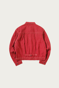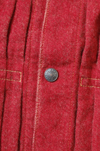 This 1st jacket is made from a unique twill fabric blend of cotton and wool, resulting in a moderately brushed texture similar to aged fabric. It features snap buttons for easy wear and a half lining of cupra. With a purposely distressed look, it captures the changes brought on by time. - 65% cotton, 30% wool, 5% nylon - Snap Buttons - Faded Red