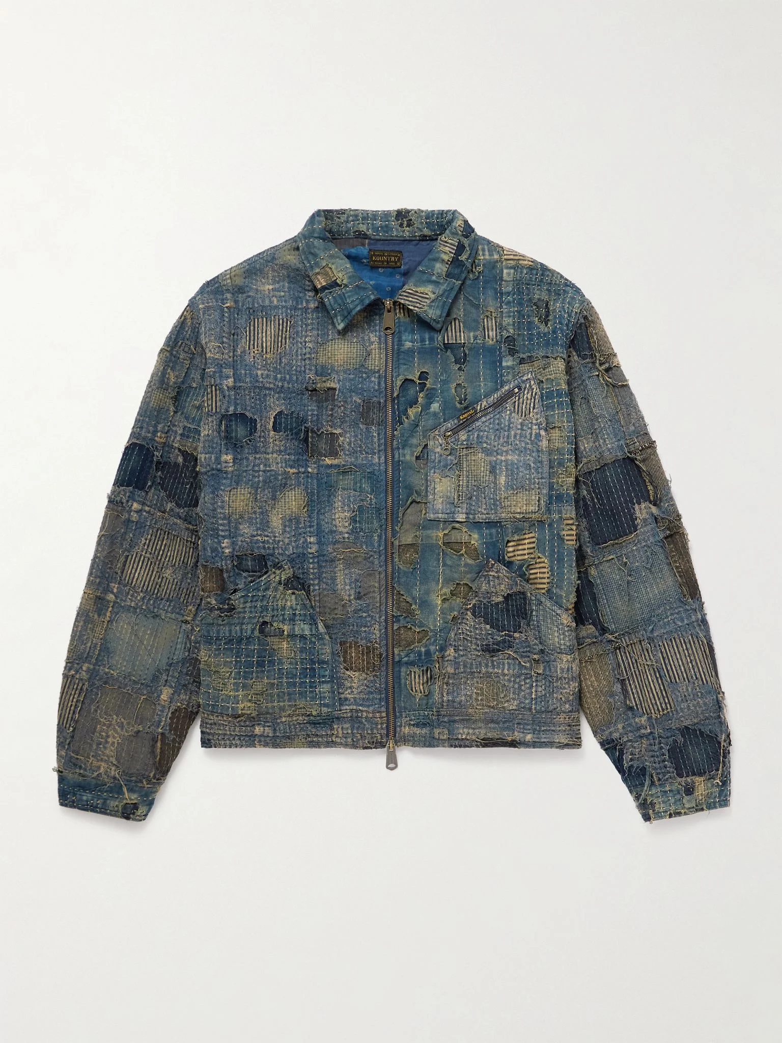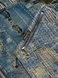 KAPITAL gets its name from Kojima, Okayama – Japan's 'Denim Capital'. Demonstrating that speciality, this jacket is distressed and repaired using sashiko stitching, a traditional technique used to extend a fabric's life. The front is fitted with a few slanted pockets, while the back depicts an impressively patchworked Virgin Mary. Size & Fit - Size 1 = XS, 2 = S, 3 = M, 4 = L, 5 = XL and 6 = XXL - Fits true to size. Take your normal size - Designed for an oversized fit - Mid-weight, non-stretchy denim - Model is shown wearing a 3 - Model measures: chest 38"/ 96cm, height 6'2"/ 188cm Details & Care - Multicoloured cotton and linen-blend denim - Two-way zip fastening - Fabric1: 90% cotton, 10% linen; fabric2: 100% cotton; lining1: 56% cupro, 44% cotton; lining2: 100% acetate - Hand wash