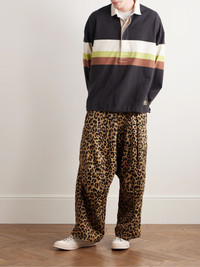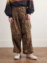 Wide-Leg Leopard-Print Herringbone Cotton Cargo Trousers Leopard print