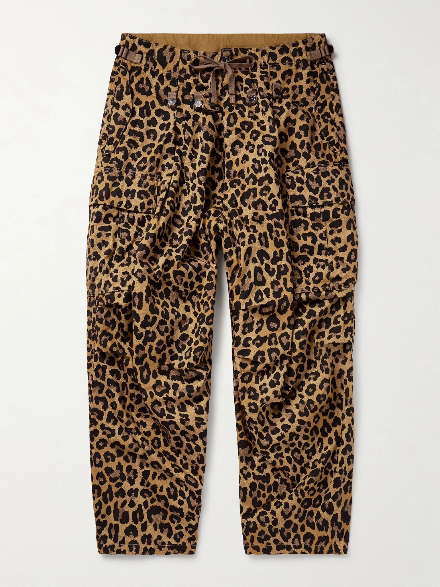 KAPITAL’s wide-leg trousers are made from hardy herringbone cotton in a bold leopard print. They're detailed with cargo pockets and a drawstring waistband along with adjustable side tabs. Large to size. See Size & Fit notes. Size & Fit - Size 1 = W28, 2 = W30, 3 = W32, 4 = W34, 5 = W36 and 6 = W38 - Fits large to size. Take one size smaller than normal - Wide leg, low-crotch style - Adjustable at the waist - Mid-weight, non-stretchy fabric - Model is shown wearing a 1 - Model measures: waist size 30, height 6'1"/ 185cm Details & Care - Leopard-print cotton - Button fastenings - 100% cotton - Machine wash