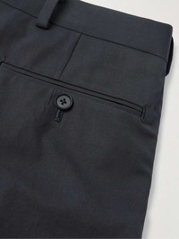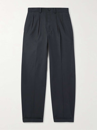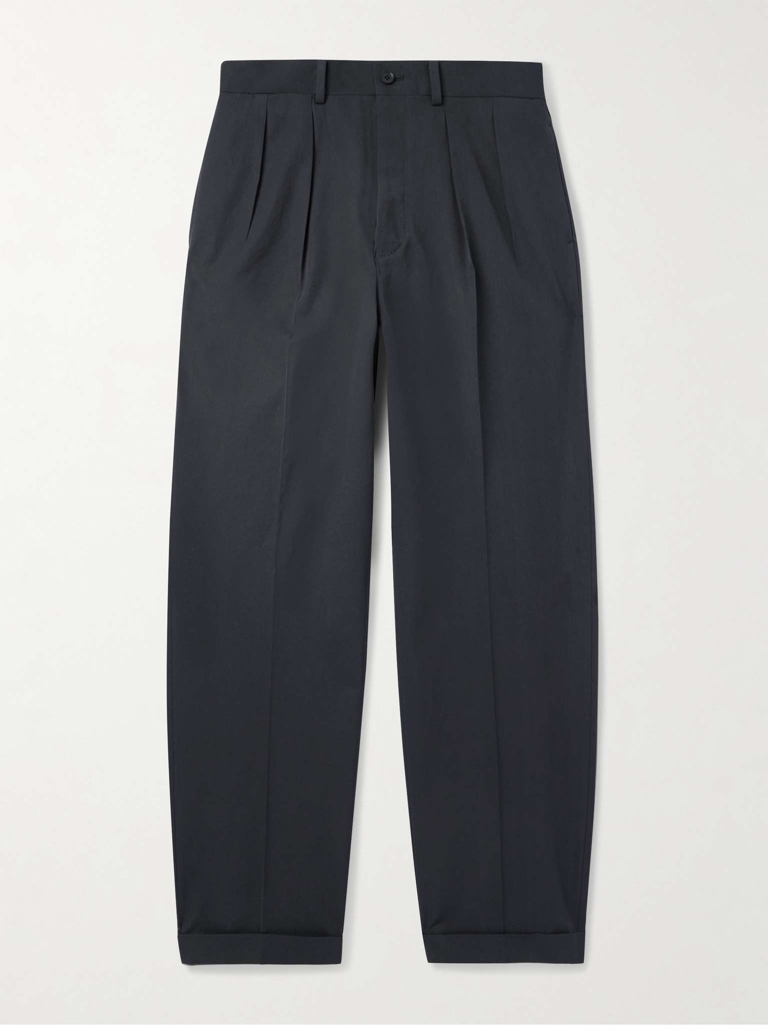 Kaptain Sunshine's wardrobe classics showcase exceptional Japanese craftsmanship and high-quality materials. These trousers are made from from Egyptian long-staple cotton-gabardine that's washed to give it a notably soft handle. They're detailed with double pleats along the straight legs and have rolled cuffs. Details & Care - Navy cotton-gabardine - Button fastenings - 100% cotton - Dry clean