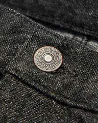 Kaptain Sunshine uses American grown San Joaquin Cotton for their 13.5oz selvedge denim. Featuring a black warp, grey weft weave, the denim features natural nep yarns for a raised surface texture reminiscent of 1940s deadstock fabrics. Pre-rinsed to eliminate shrinkage, the jeans come finished with custom hardware and a deerskin leather patch at the interior waistband. - 13.5oz Japanese selvedge denim - Relaxed-tapered fit - One-wash rinse process - Black warp, grey weft - San Joaquin cotton - Zipper fly - Custom hardware - Deerskin leather patch - Solid black selvedge - 100% cotton - Made in Japan