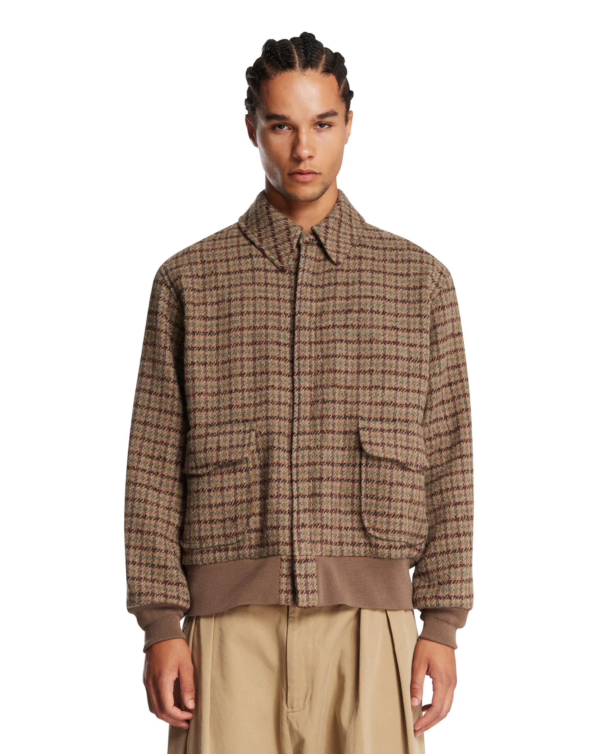 Kaptain Sunshine Beige Checked Wool Bomber. Beige checked wool blend, alpaca and linen, classic collar, long sleeves, ribbed hem and cuffs, concealed front closure, two front flap patch pockets, straight hem. Thiago is 185 cm and he is wearing size IV. DETAILS Model: KS25FJK02GUC Composition: 72% Wool, 21% Alpaca7% Linen Made in: JAPAN Season: FW25-26