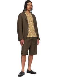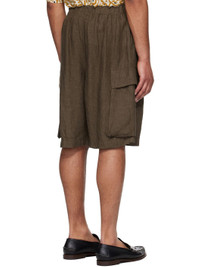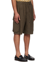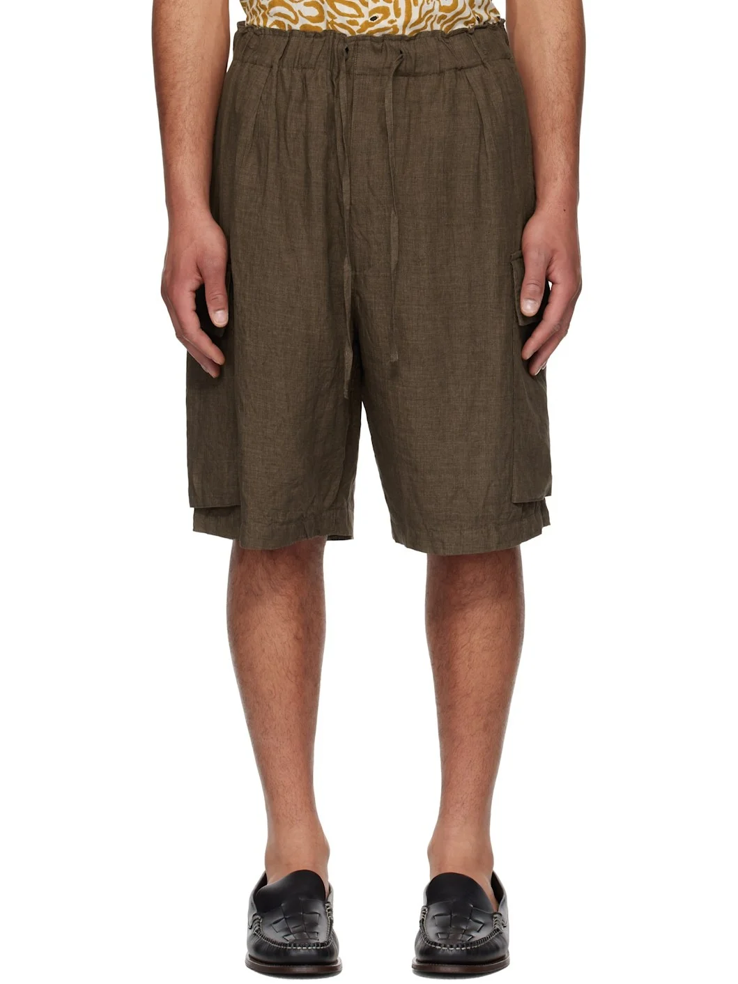 Yarn-dyed linen hopsack cargo shorts. · Drawstring at elasticized waistband · Two-pocket styling · Cargo pocket at outseams · Full cupro satin lining Supplier color: Brown Body: 100% linen. Lining 1: 100% cupro. Lining 2: 100% cotton. Made in Japan 251194M193000