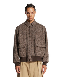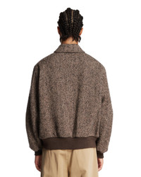 Kaptain Sunshine Brown Herringbone Wool Bomber. Brown herringbone wool blend, alpaca and linen, classic collar, long sleeves, ribbed hem and cuffs, concealed front closure, two front flap patch pockets, straight hem. Thiago is 185 cm and he is wearing size IV. DETAILS Model: KS25FJK02HER Composition: 72% Wool, 21% Alpaca, 7% Linen Made in: JAPAN Season: FW25-26