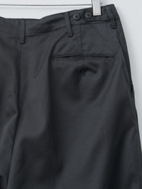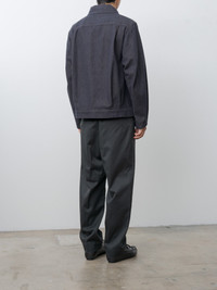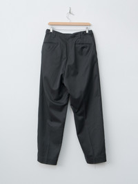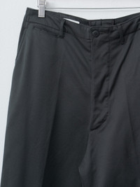 Wide-leg trousers crafted from high-density cotton drill woven with thick, twisted Finx cotton yarns. The fabric is thoroughly washed for a smooth, clean surface with a subtle luster and elegant drape. The silhouette features no pleats and a generous cut through the leg. Details include adjustable waist tabs, side pockets, and back welt pockets. - Made in Japan - 100% Cotton - Available in Black - The model is 6'1"/185cm and wears size 3/M