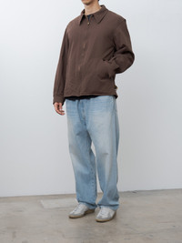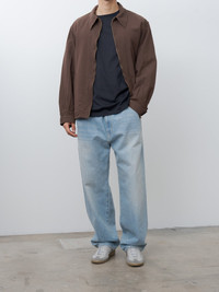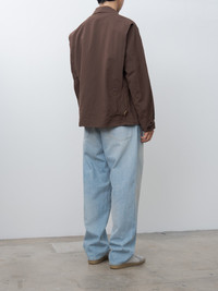 The Fly Blouson is made from wool washi gabardine, a fabric that combines fine worsted wool and 'mino washi', a traditional Japanese paper. The wool's increased twist enhances breathability, while the washi gives the fabric a pleasantly dry feel, making it ideal for warm weather. Details include a zip front, slanted side pockets, straight hem, action pleats on the shoulder and adjustable side straps on the back. - Made in Japan - Wool 65%, Paper 35% - Available in Mocha Brown and Ink Black - The model is 6'1" / 185 cm and wears size 40/L