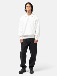 A modern take on vintage sportswear, this pullover is crafted from ultra-soft cotton fleece knitted with a slow hanging stitch. The brushed interior and garment-dyed finish give it a broken-in, vintage character while maintaining exceptional warmth and comfort. Cut with a relaxed silhouette, half-zip closure, and ribbed trims, it delivers easy layering and versatile everyday wear. DETAILS - KS25FCS06 - 100% Cotton - Relaxed fit - Standard collar - Half-zip closure - Set-in sleeves - Ribbed cuffs and hem - Made in Japan